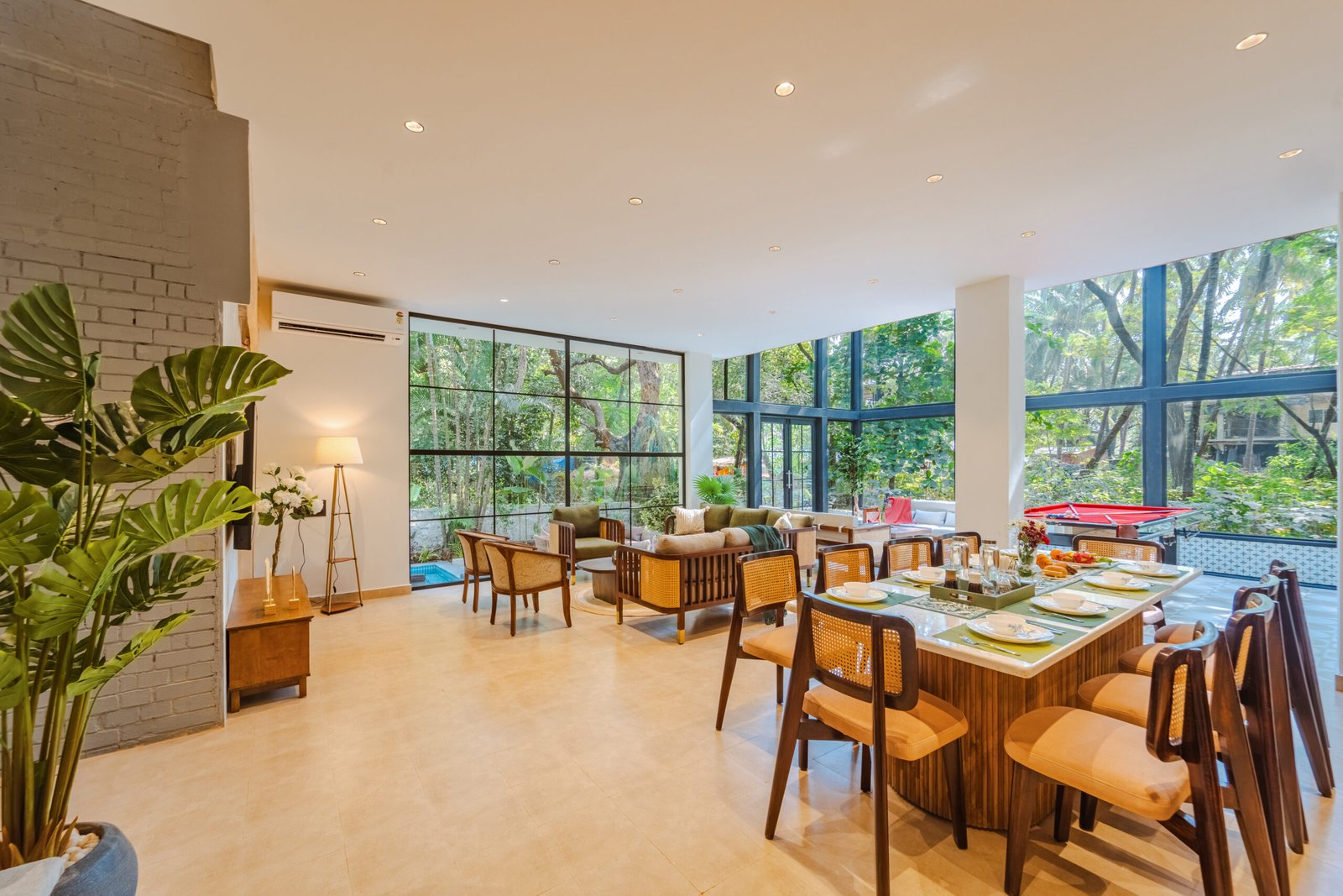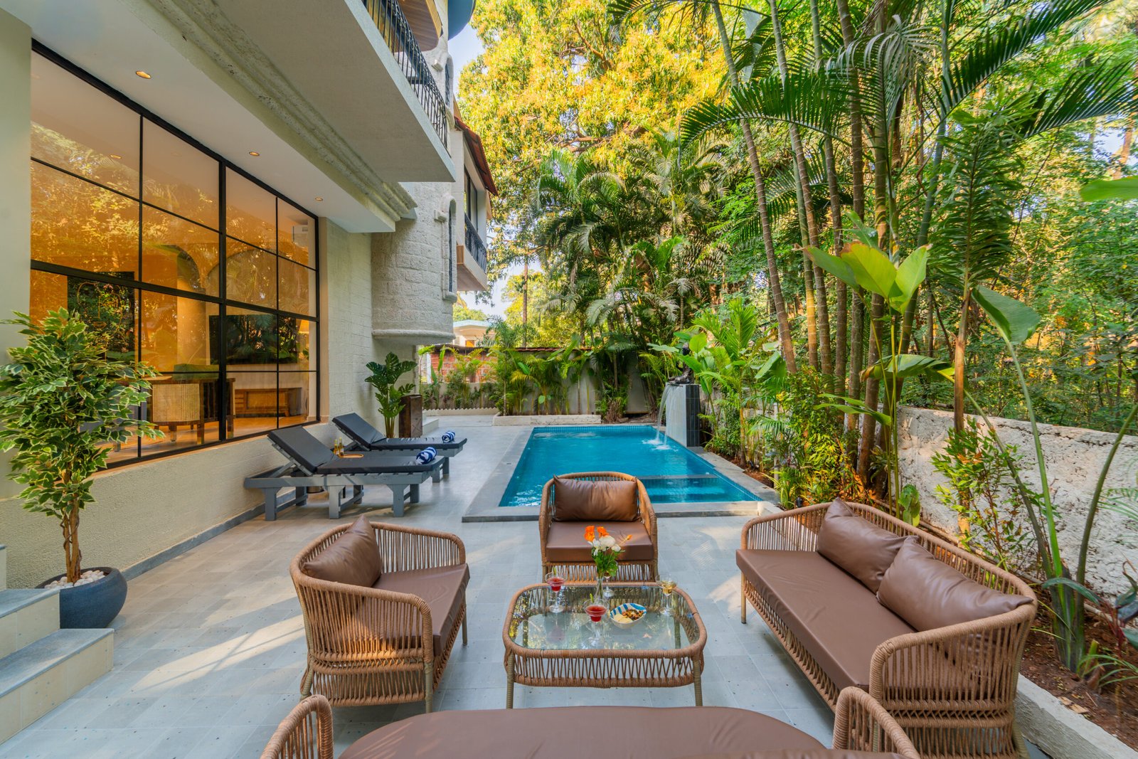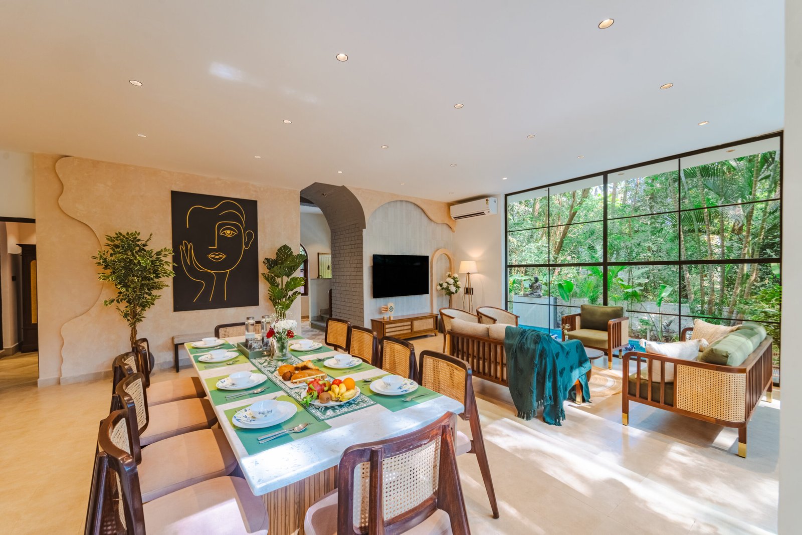 Surrounded by lush Goan greenery, Gravio Villa offers complete privacy while featuring a striking glass foyer, a private swimming pool, jacuzzi, and pool table, all thoughtfully arranged to create an elevated yet unhurried holiday experience. The villa blends modern architecture with warm, welcoming interiors that invite you to slow down and enjoy every moment.